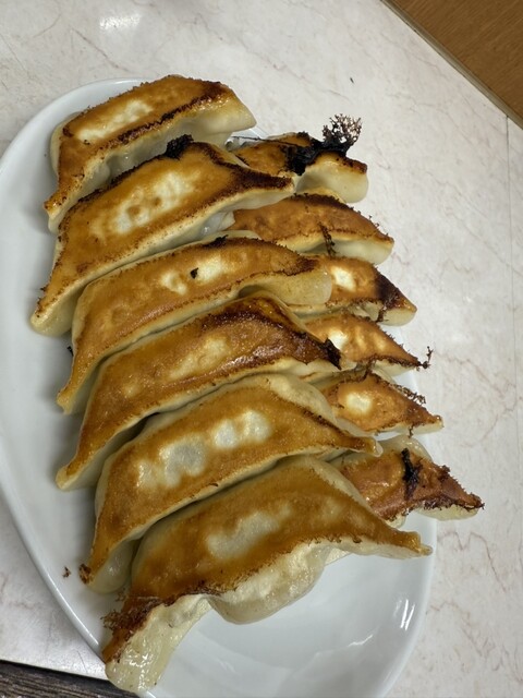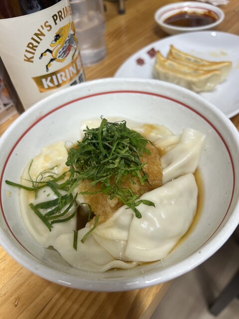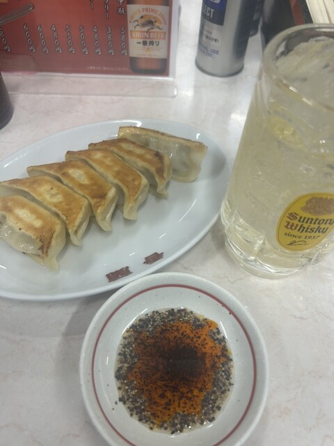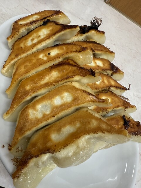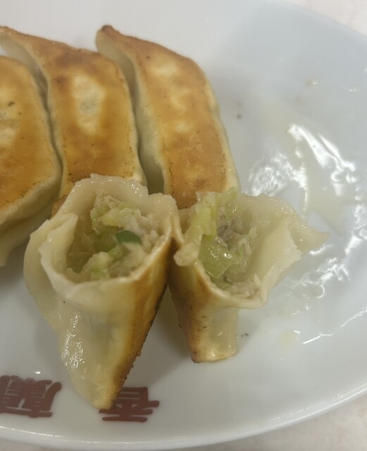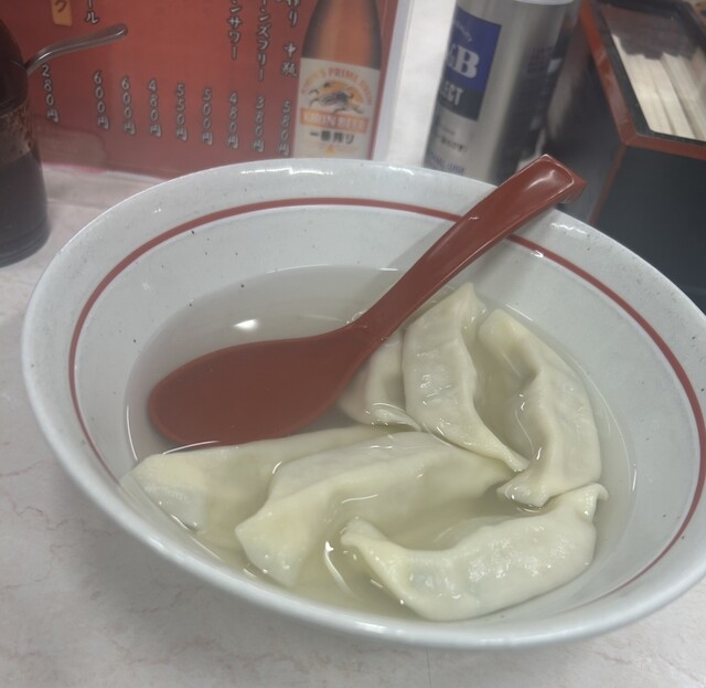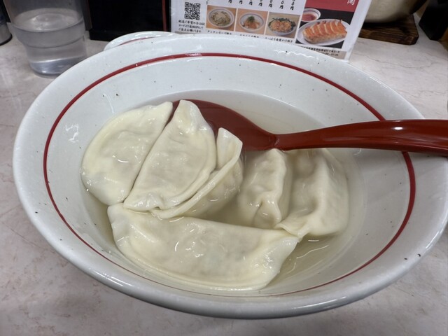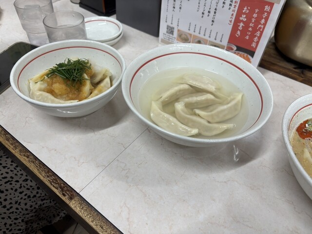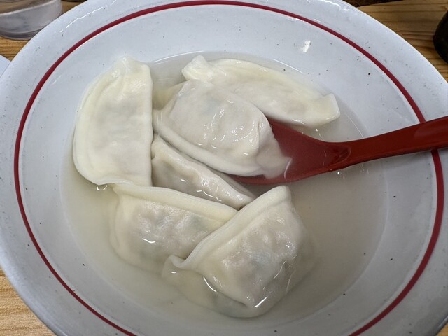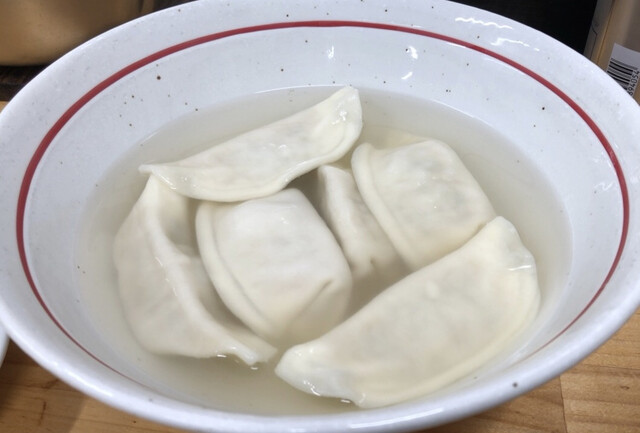 焼き餃子は噛んだ瞬間ニラの味がしっかりとしたオーソドックスな餃子で小ぶりなのでいくつも食べられる味です。水餃子は皮がもっちりで、スープは鶏ガラでした。醤油や酢を足して味変しながら食べていきましたがラー...