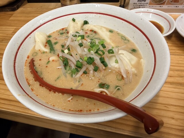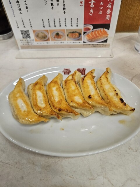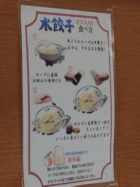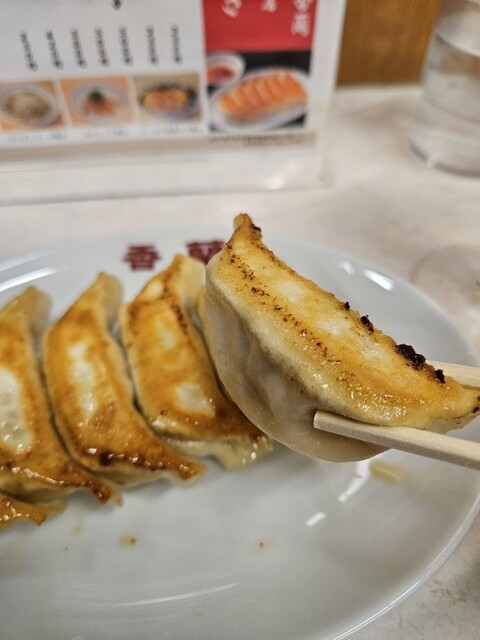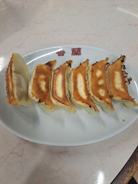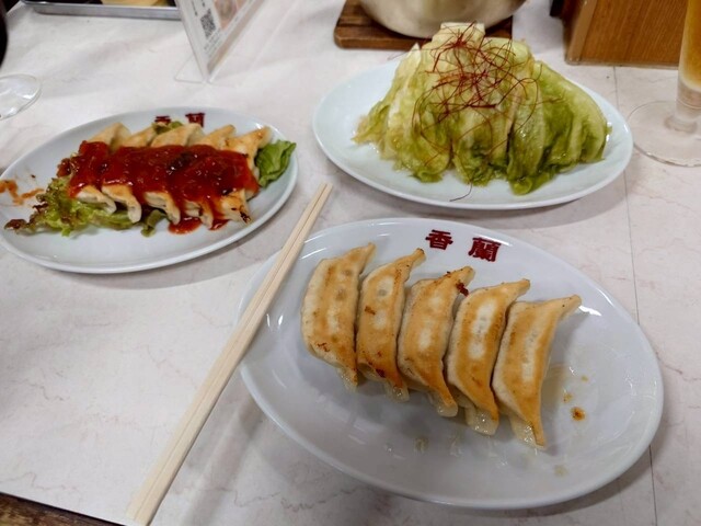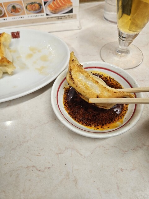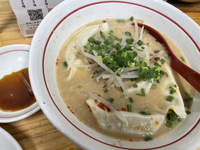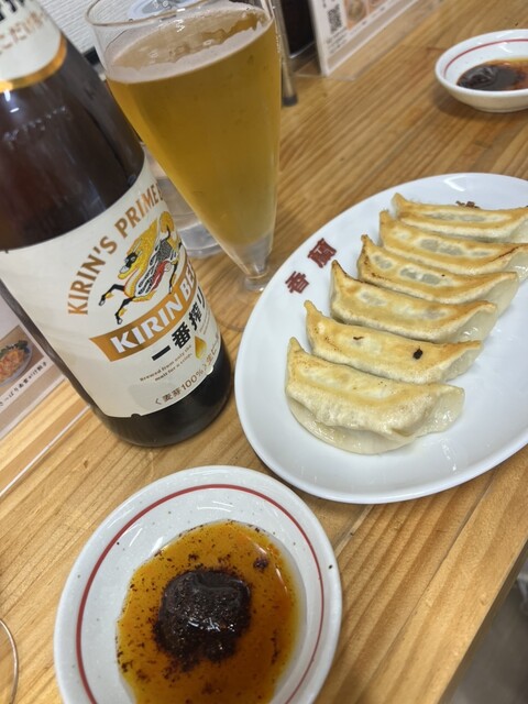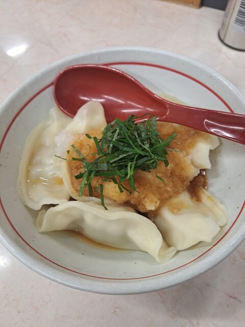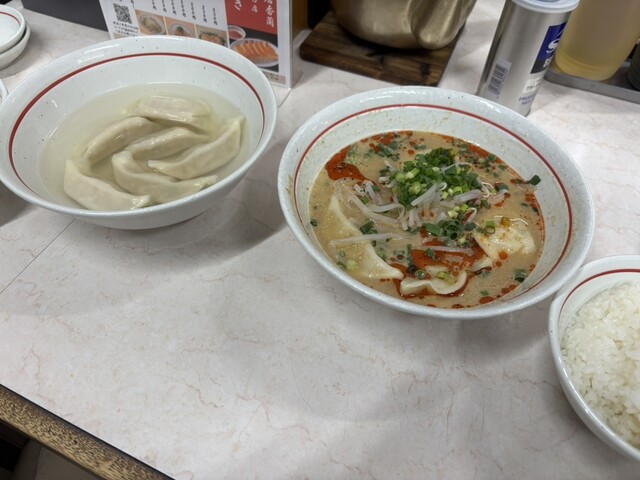 焼き餃子は噛んだ瞬間ニラの味がしっかりとしたオーソドックスな餃子で小ぶりなのでいくつも食べられる味です。水餃子は皮がもっちりで、スープは鶏ガラでした。醤油や酢を足して味変しながら食べていきましたがラー...