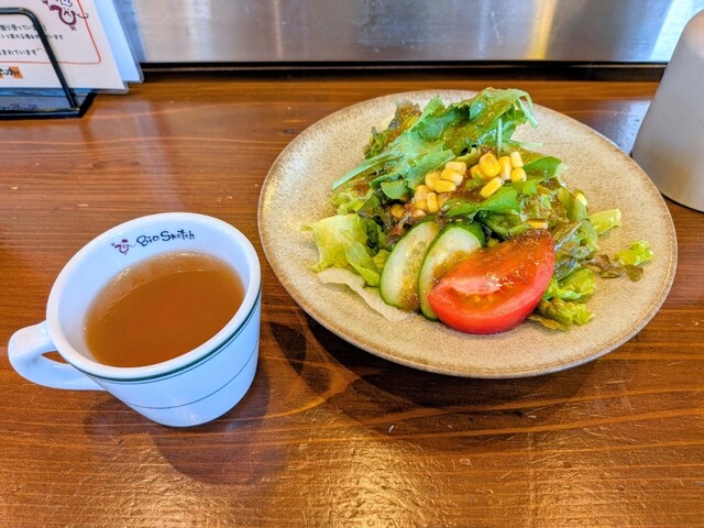 提供は、10分程でシャキシャキのサラダとコンソメスープが登場です