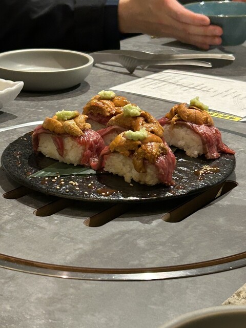 既に昨年選考オープンして注目を集める「串屋ゆとり」の姉妹店。漆喰和紙の壁紙、照明で演出する和とモダンの美学を体現した空間。洗練と奥深さを追求し、訪れるお客様に静謐な雰囲気を提供します。肉は全国の生産者から直接、厳選して取り寄せる和牛の数々。職人による独自の調理・技法で此処でしか味わえない逸品をご堪能ください。
