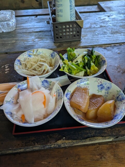 栃木の温泉に行きがてらに立ち寄りました。駐車場はお店の向かいに10~12台程度かな?ちょっと初見では分かりづらいかも!看板にあれこれぶら下がってたりするから。入口の扉は重くて開けにくいです入る前に建物の左手の台の上に名前を書き順番を待つようです。入ると囲炉裏端が2つ小上がりに。右手には大テーブルがあります。後に、後ろ側にも席があるようです。車の割には客数が居なかったから。注文は壁に店主の手書きで貼...