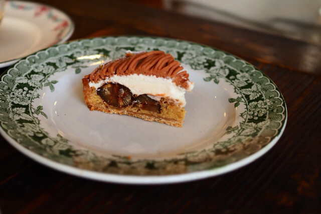この日、栗のショートケーキがメニューになく残念に思っていると、栗のミルフィーユがあり、こちらはまだ食べたことがなかったのでミルフィーユにしました。