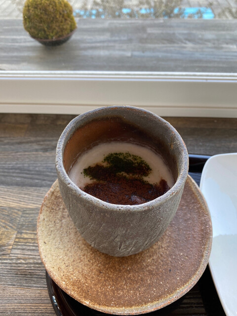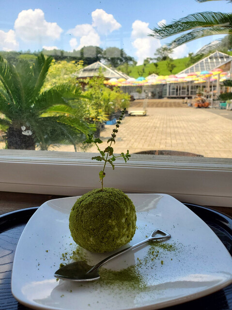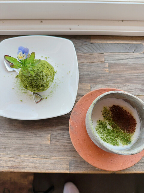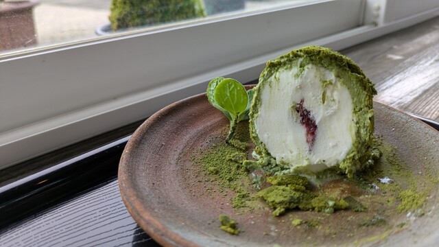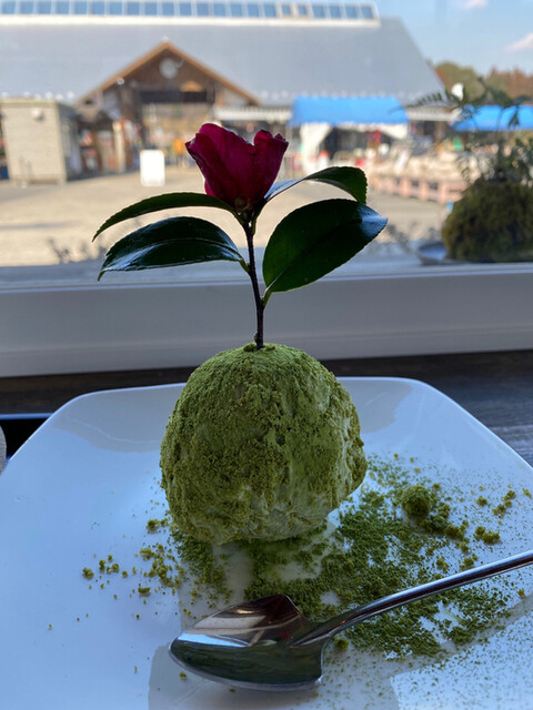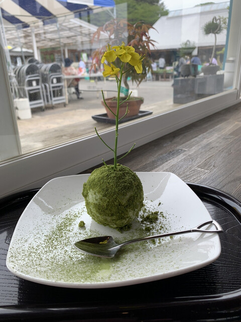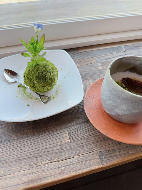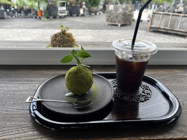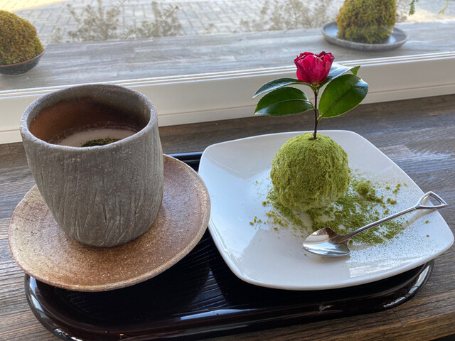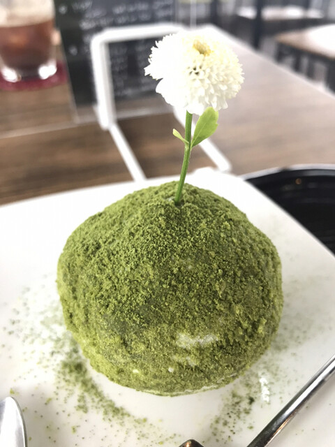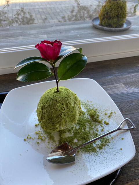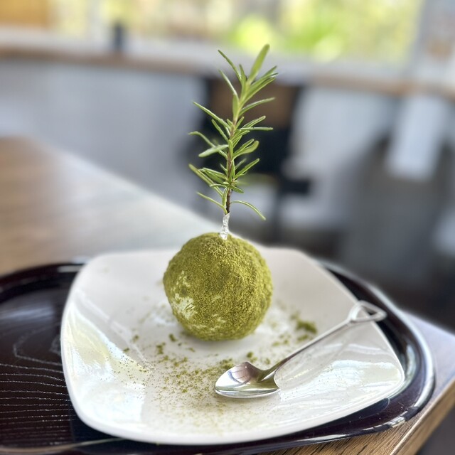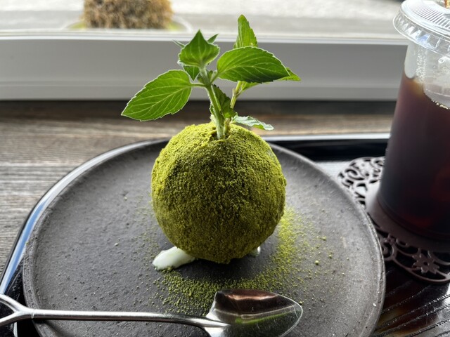 抹茶パウダーがふられ、見た目はまさに盆栽