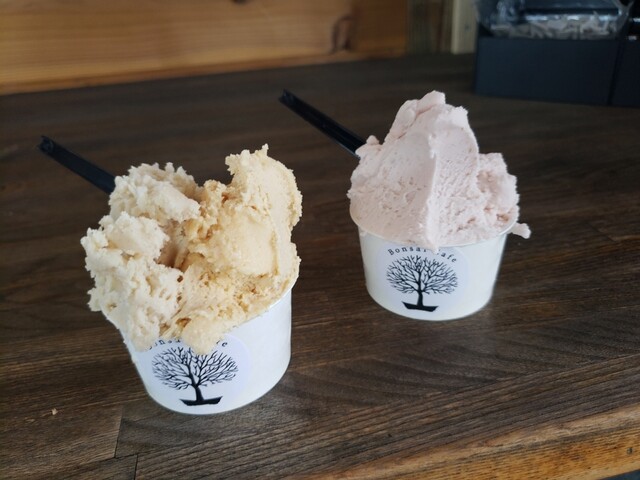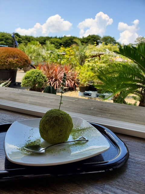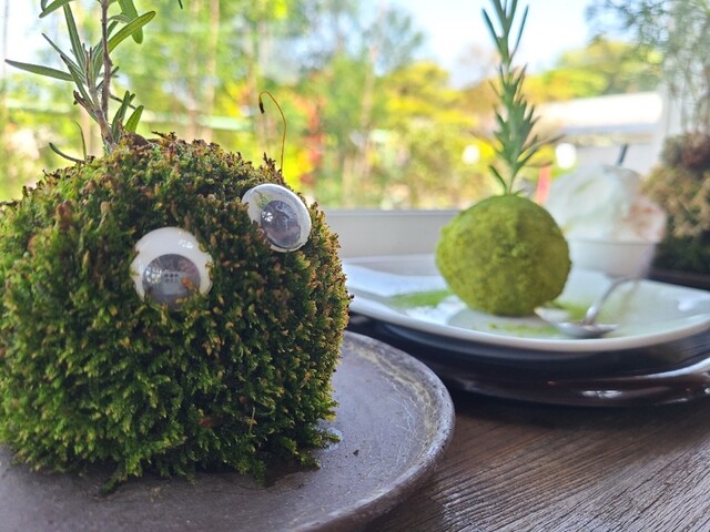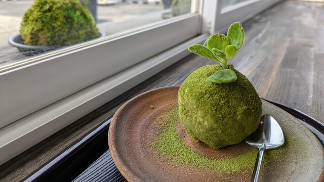 金精峠チャレンジの盆栽屋1軒目です。「苔玉スイーツ(¥650)」をチョイスです。苔にも盆栽にも興味がないですが、見た目が楽しそうな苔玉スイーツを食べに来ました!