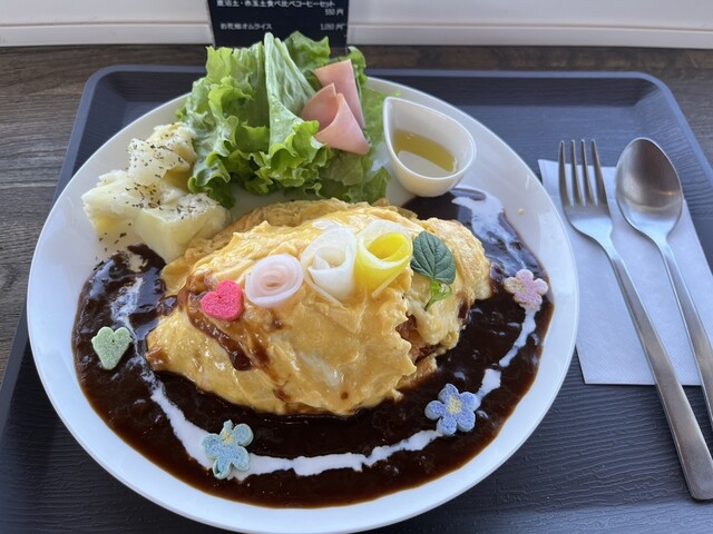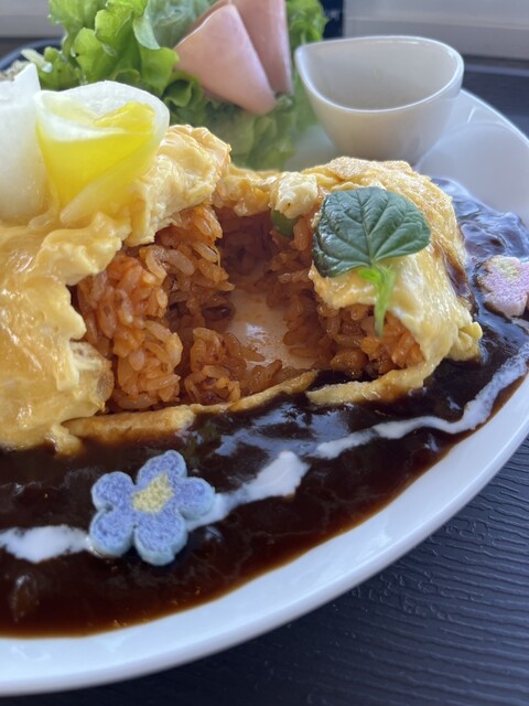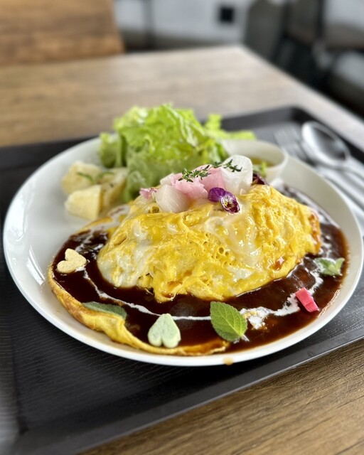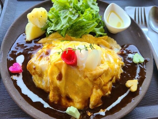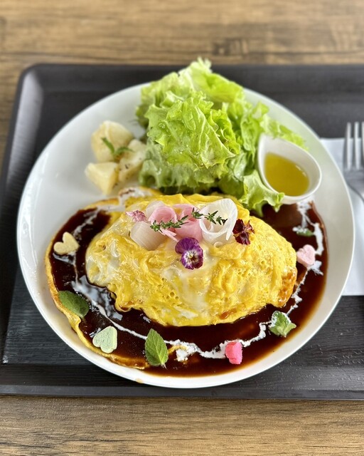 前は苔玉スイーツをいただきましたが、今回は気になっていた花畑オムライスをいただきました。