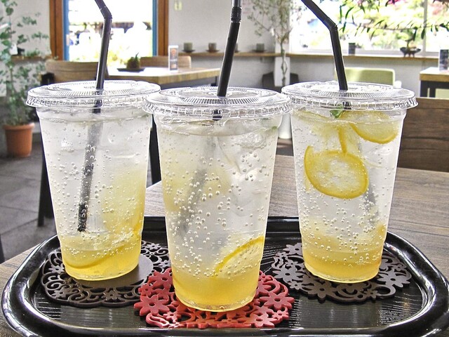 レモネードはレモンの皮を手作業でむいているそうで、つぶつぶとした食感がアクセントになって爽やかで...