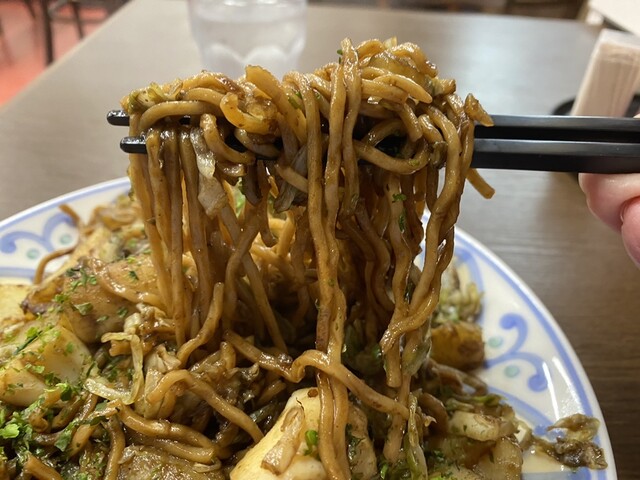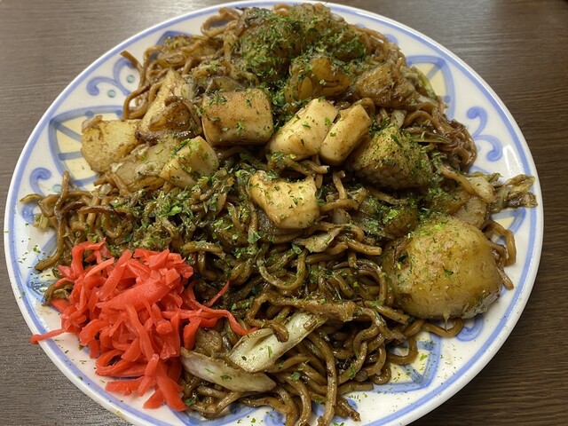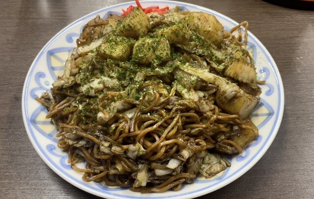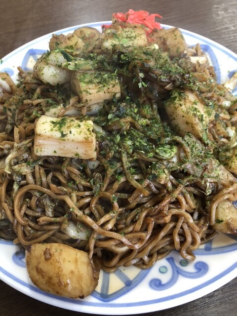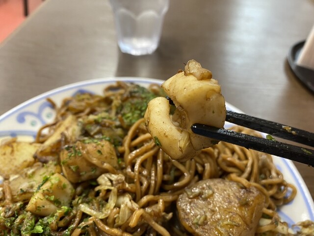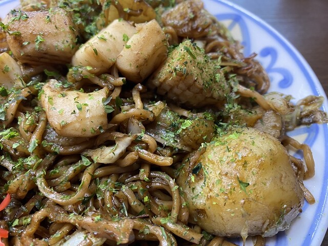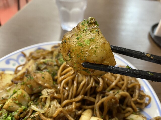 私は贅沢にもイカ入りのジャガイモ入り焼きそば、しかも大盛り700円をオーダー。