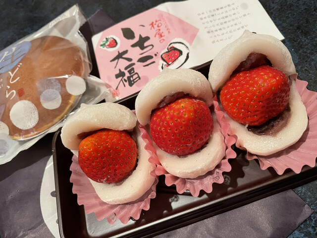 ずっとずっと食べたかった松屋さんのいちご大福^^ 早朝から並んで頂いてお土産で頂きました^^ 大福のしっとりもちもち感に 甘さ控えめながら主張しすぎないこしあん いちご... 詳細を見る