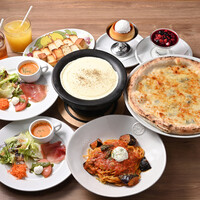 ■2名様(全6品) ・前菜 2名様分 ・チーズフォンデュ 2名様分 ・選べるパスタ 1品 ・選べるピッツァ 1品 ・選べるドルチェ 2品 ■3名様(全8品) ・前菜 3名様分 ・チーズフォンデュ 3名様分 ・選べるパスタ 2品 ・選べるピッツァ 1品 ・選べるドルチェ 3品 ■4名様以上 上記の組み合わせでご用意いたします。