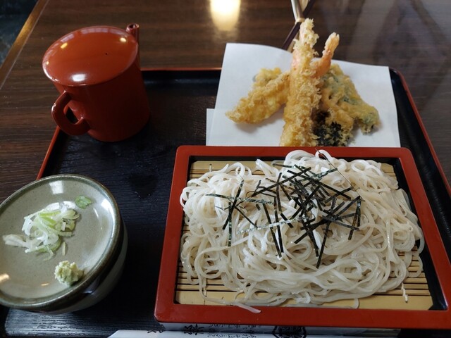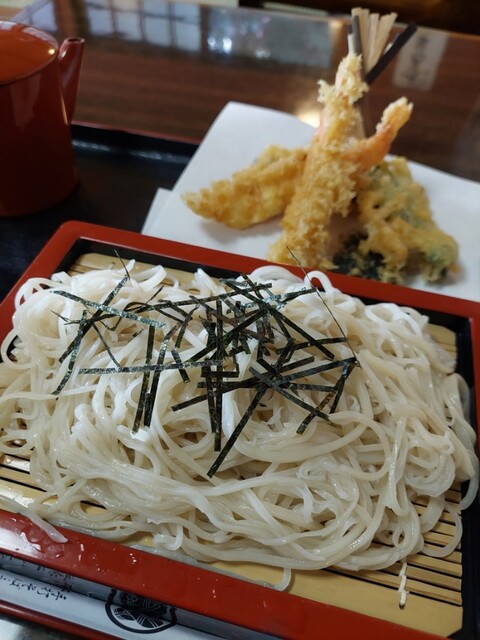 昼食時に伺いました。 駐車場は20台程度入ると思われます。 メニューで、もり蕎麦(650円)を注文しようと思いましたが、何時ものクセで大盛を頼んだあと、差額は400円と... 詳細を見る