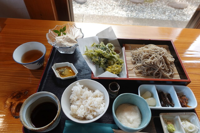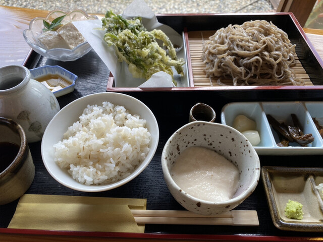 思わず「ただいま」と言ってしまうような空間で、四季を感じながら食べる手打ちそば。 店主はこの土地の水に合うそば粉を使い、香りと喉越しを大切にしている。 そばと共に春の味「山菜の天ぷら盛り合せ」や香り高い「舞たけの天ぷら」もおすすめの一品。※平日でも13時頃にはおそばが品切れとなる事が予想されますのでお早目のご来店をお願い致します。