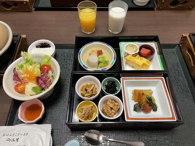 朝ごはんも部屋食で。 どんな感じかなあと思っていたら、それはそれは豪華な朝食。 このボリュームを朝から…!と思う驚愕の量でした。 お品書きとしては、小鉢×6、納豆、台物、... 詳細を見る
