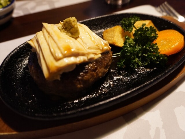いつもは湯葉ハンバーグをいただきますが、今回はシンプルなビーフハンバーグを。