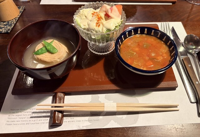 2025年百名店の鉄板焼&グリルステーキの妙月坊へ念願の初訪問しました。こちらのお店は日光の輪王寺の旧坊(僧侶の住居かな)をリノベーションしたお店で大変魅力的です。外国人の来店も多いですね。ただお店の駐車場が分かりづらく加えて夜の照明が暗く入りづらいです。とちぎ牛A3サーロイン@5,500円、Bコースセットのオードブル.スープ.サラダ.ライスかパン.食後のコーヒーか紅茶.デザートで+@2,750円...