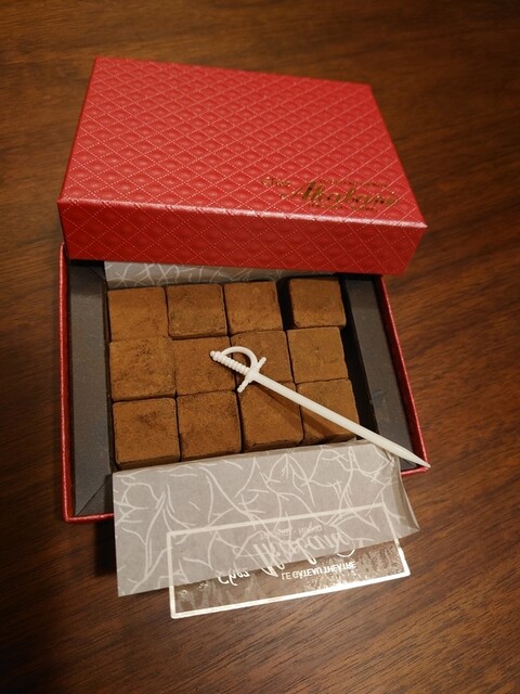 メニューを拝見。ケーキをはじめ、焼き菓子、ゼリーなど、数十種もの美味しそうなお菓子が並んでいます。色々食べたいものはあったが、1番美味しそうに見えた生チョコレート。2個以上で箱入...