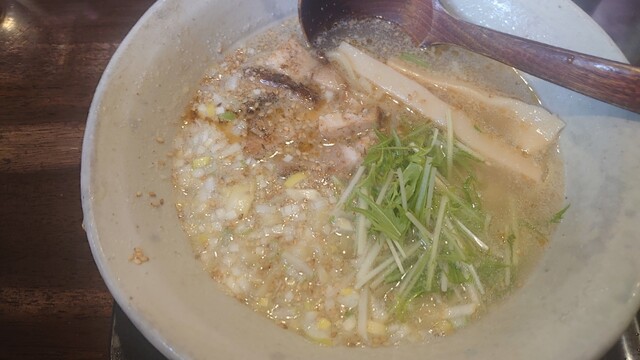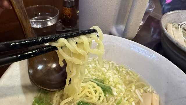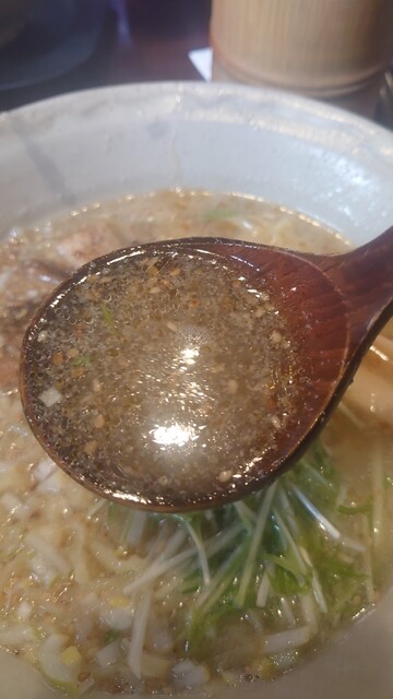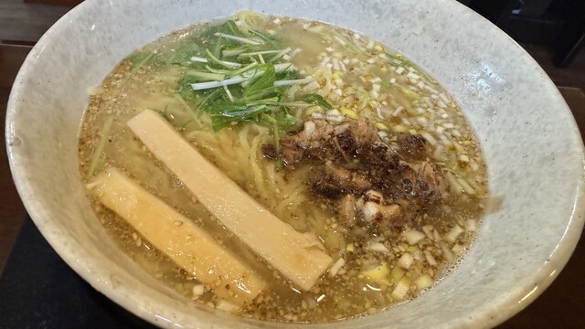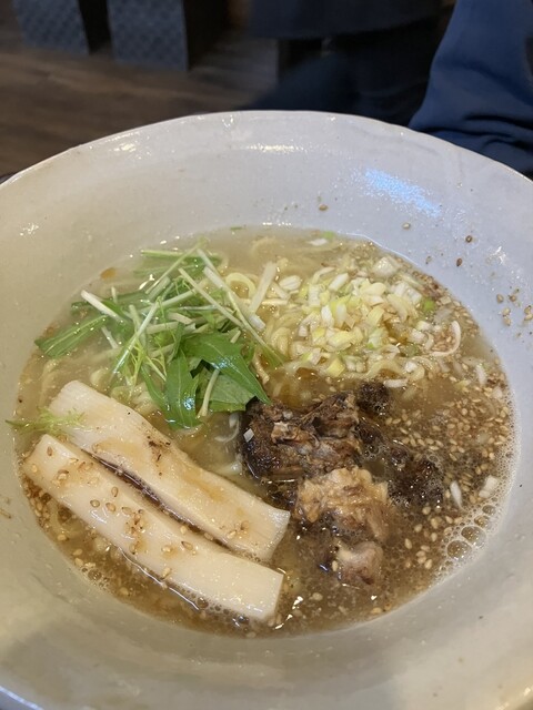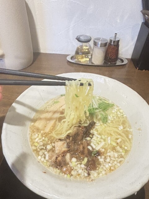 煮干し系の香りがいい 塩加減がよく、後味にまろやかさがある 食べやすい 土曜日の11:45分ごろ訪問 先客2名 店内には空席もあり、余裕がある 久しぶりの煮干しスープ?ですが、まろやかさを感じた、好みです どんぶりの底に残る煮干しの粉末の量は少ないが、しっかり出汁を出してくれているし、塩... 詳細を見る