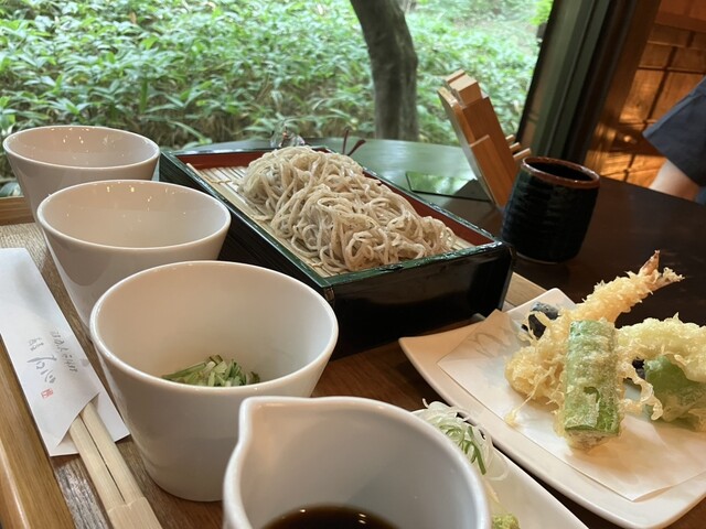 緑の中に佇む手打ち蕎麦の人気店へ・11時半オープンですが予約不可・事前に順番札を取る必要があるんです 平日11時くらいに行って12時10分の札をなんとかゲットできましたが夏休み中... 詳細を見る