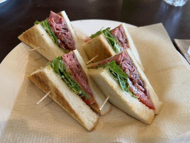 店内はテーブルは6卓程、15席くらいでご自身たちが回すのに無理のない程度、といった規模。 オススメはローストビーフサンド、だけどサラダも食べたい! しかしサラダは2人前から…で... 詳細を見る