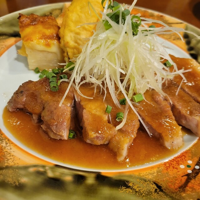 ポークソテーは、脂身が甘くてジューシー。