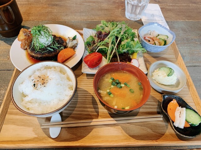 元工場だった場所をリノベーションした広いスペースに、センスの良い居心地の良い空間。 お昼のセットメニューを3種類いただきました。1.那須鶏の唐揚げ定食、2.チキン南蛮定食、3.油... 詳細を見る