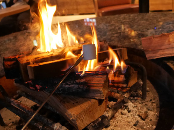 火が入ったその暖炉では焼きマシュマロ(スモア)が登場。