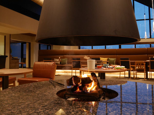 「森のキッチン」にはモダンな印象の暖炉があります。