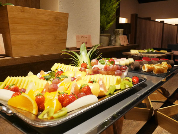 最初に前菜があったスペースは、タイミングを見計らって、フルーツとスイーツの