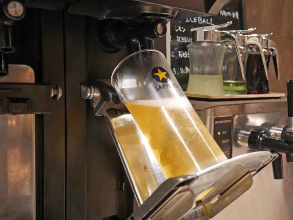 夕食時にはその種類も増えるよう。ワインや焼酎、自動生ビールサーバーもありました。