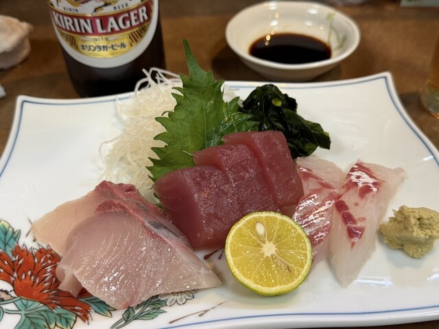 刺身は居酒屋らしい一切れ大きめの豪快な切り方ですが、おつまみとしてそんなに悪く無い仕上がりです。