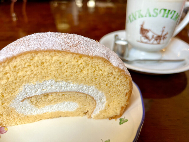 こちらはサンドイッチなど色々メニューがあるのですが、お昼は別の店で済ましてきたのでロールケーキセット(セットのコーヒーはレギュラー)を注文しました。
