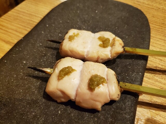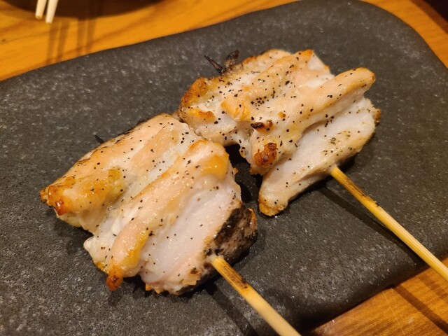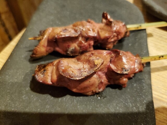 スペシャルレバー、ささみ、侍椎茸を注文。レバーに関してはとろとろ具合があってなかなか美味い。椎茸は普通。ささみは中が硬めでよく焼きスタイルというか、既に焼けてるのをあっためた感じ。ココロ、ポンズには及...