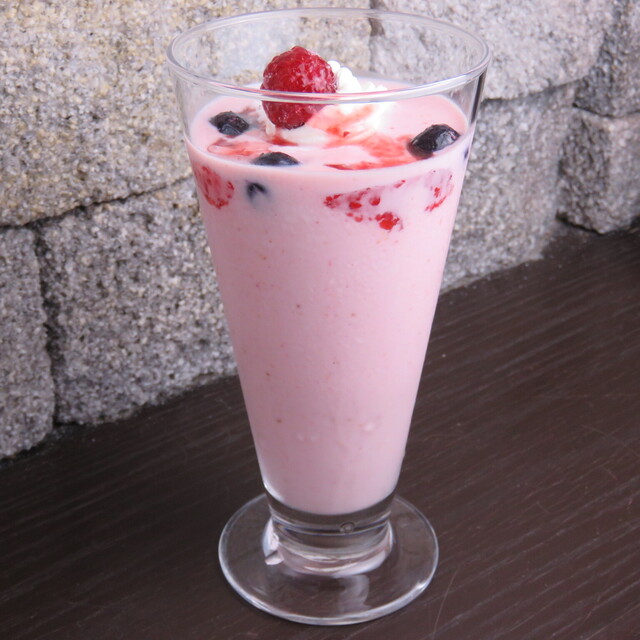 朝のスムージーをいただきました。赤いほうのスムージーです。ほかには緑のスムージーもありました。