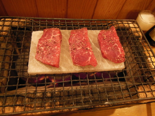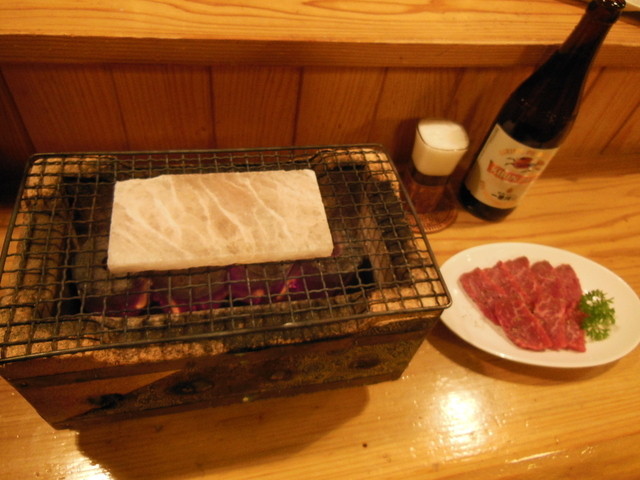 入り口を入ると豊富な焼酎と女将の笑顔でお出迎え。いろいろなプレミアム焼酎を飲んでみたい人には、ぜひおすすめ。大将が自信をもって薦めるヒマラヤの岩塩プレートの上で軽く両面を焼く阿波牛岩塩プレート焼牛ホルモンチリトリ鍋はボリュームたっぷり。一人前が二人で丁度よいくらいで驚き!