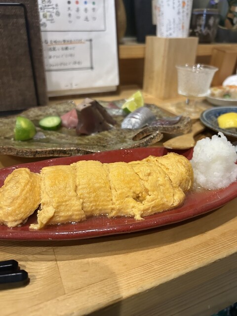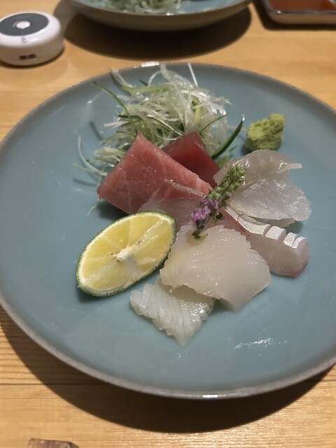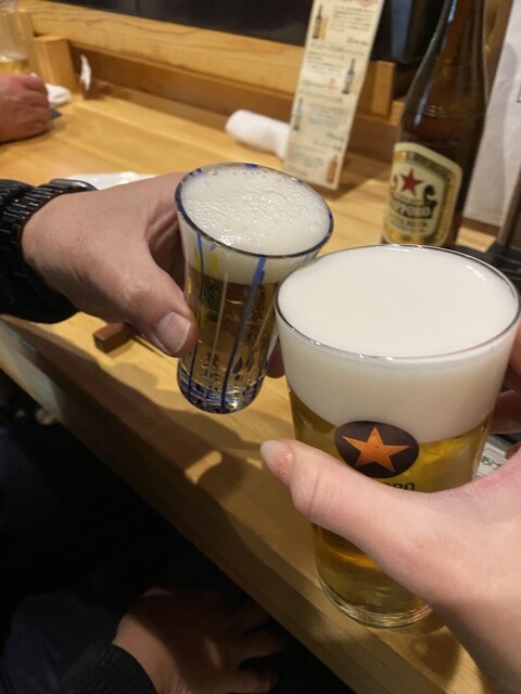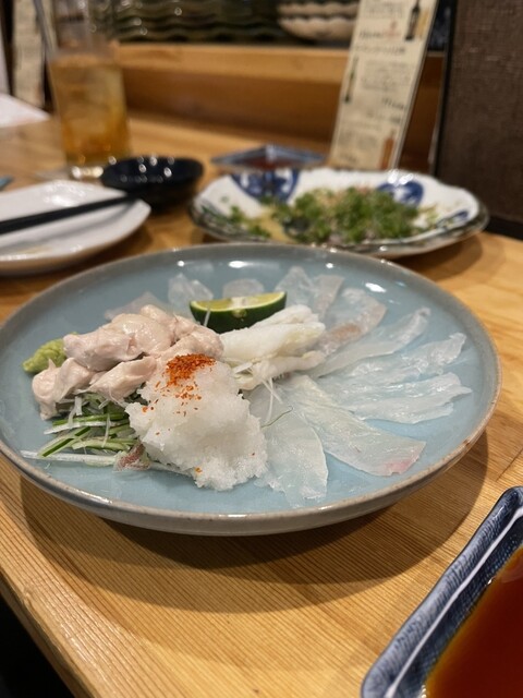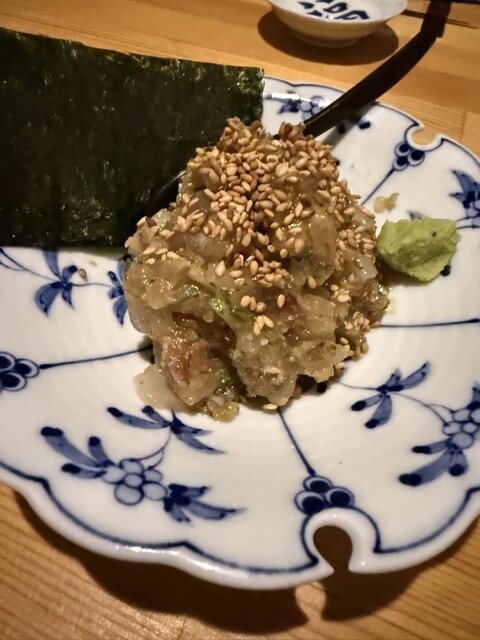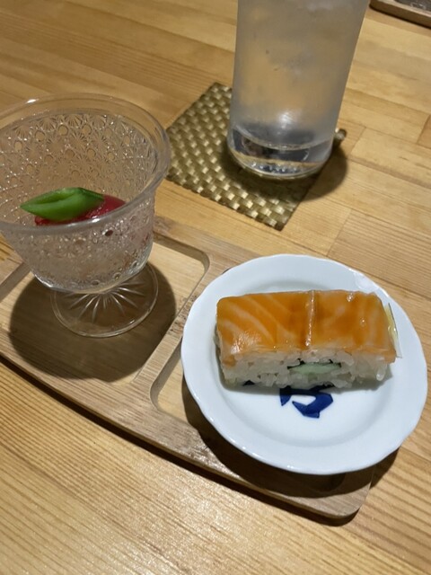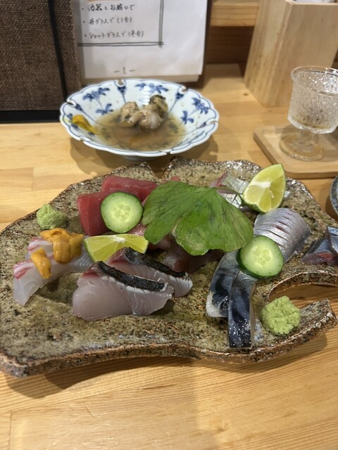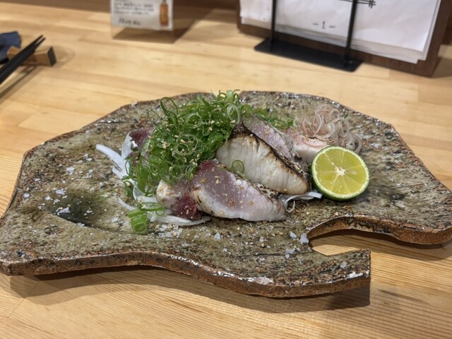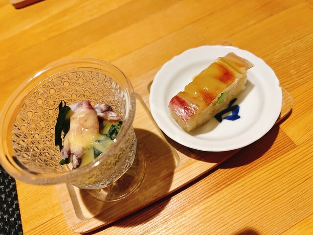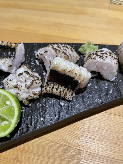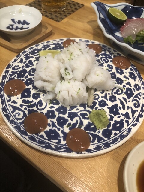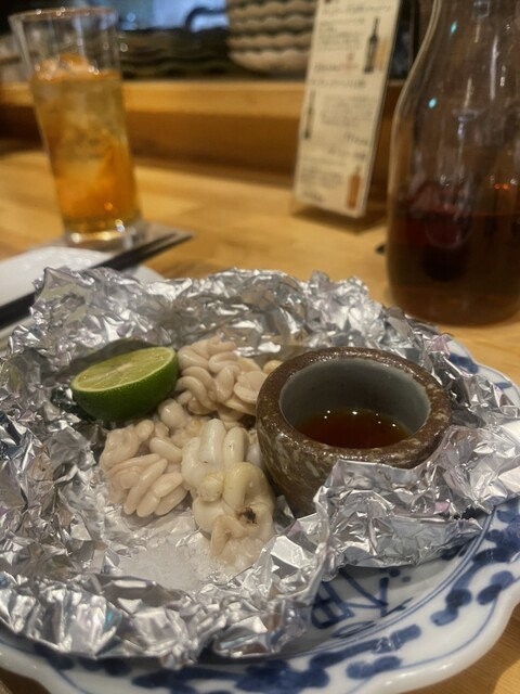 徳島産の岩牡蠣にびっくり仰天❣️大きさといい、美味しさといい、抜群。徳島産の鱧、カツオの塩タタキにたんのしました。お通しはうざく、イサキの握り。生ビールで乾杯し、久しぶりの徳島の夜を楽しみました。赤霧...
