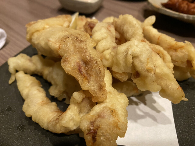 そして刺身盛り合わせ、ホルモン唐揚げ、せせりの天ぷら、牛タンユッケを注文しました!