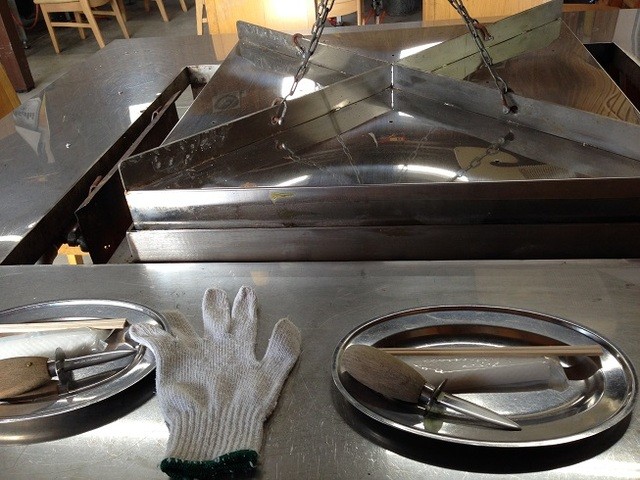 周りは皆さん常連さんばっかりのようで、飲み物や調味料をたっぷり持ち込んで楽しまれていました。そんなシステムとは知らなかった〜。四人だと他のグループと相席になりました。