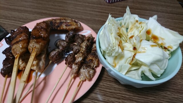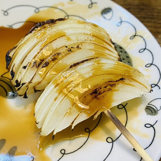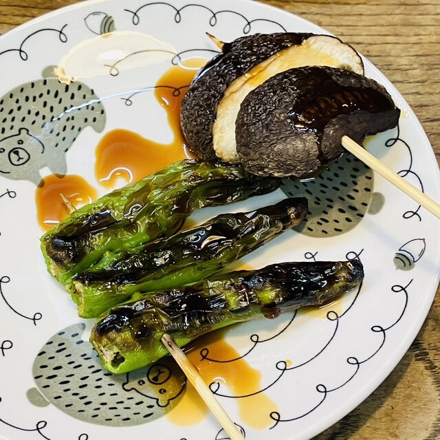 壁のメニューで鍵が付いているものだけが注文できます。焼き鳥x2、つくねx2、しいたけ、ししとう、新タマネギを食べました。注文してから丁寧に焼いてくれます。