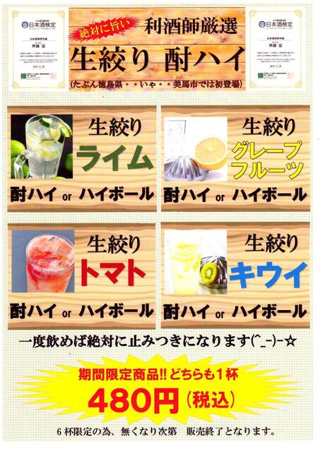 当店は地産地消に拘り、徳島の食材と利酒師でもある私が厳選した地酒をより多くのお客様に味わって頂き、地方の素晴らしさを居酒屋レベルで発信出来るよう日々精進致しております。現在は徳島県美馬市に1店舗構えているだけですが、ネット販売やイベント出店など積極的に展開し現行の営業体制に拘らずお客様のニーズに即対応出来るような経営体制で徳島発のナショナルチェーンを目指すと共に、『地元食材』と『地酒』と『からあげグランプリ金賞受賞の名物からあげ』に拘り続けている、少し頑固な親父が個人経営している居酒屋でございます。 |