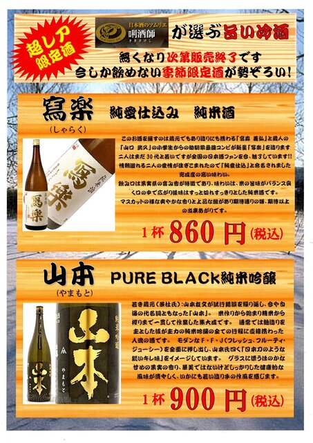 利酒師厳選の今月の地酒③(11月3日~) (by お店)