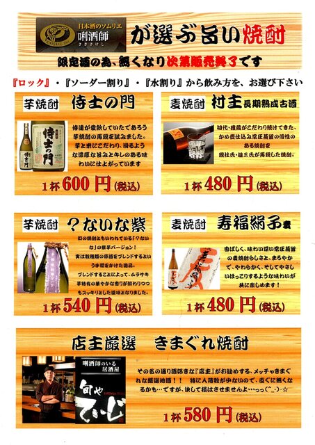 利酒師厳選の今月の焼酎(11月3日~ ) (by お店)