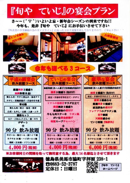 大晦日に教習所の仲間と一緒に、美馬市の居酒屋で年越しごはん。雰囲気が本当に良かったです。