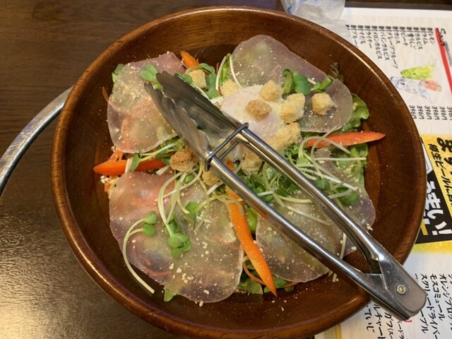 お刺身サラダはさっぱりしていて食べやすく、唐揚げは外はカリッと中はジューシー。...