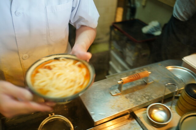 まず、うどんの注文は、かけうどん・小・あついを2人分。