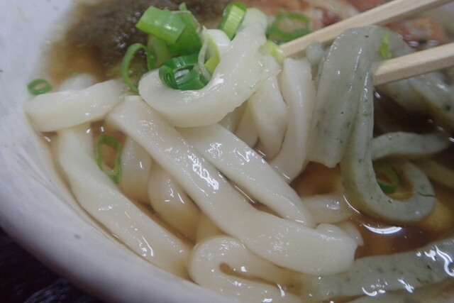 そして、よもぎうどん、緑の見た目ほどの味の違いよりも、
