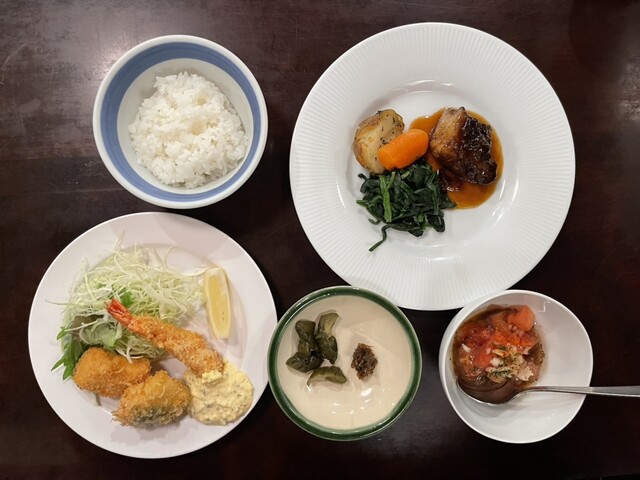 ここ、ざくろは夜だどけっこうお高いのですが、平日のランチはお安くいただけます! 特にランチの和定食は好きなおかずを3品選べて美味しい和食がいただけます!注文したのはお刺身三種盛合... 詳細を見る