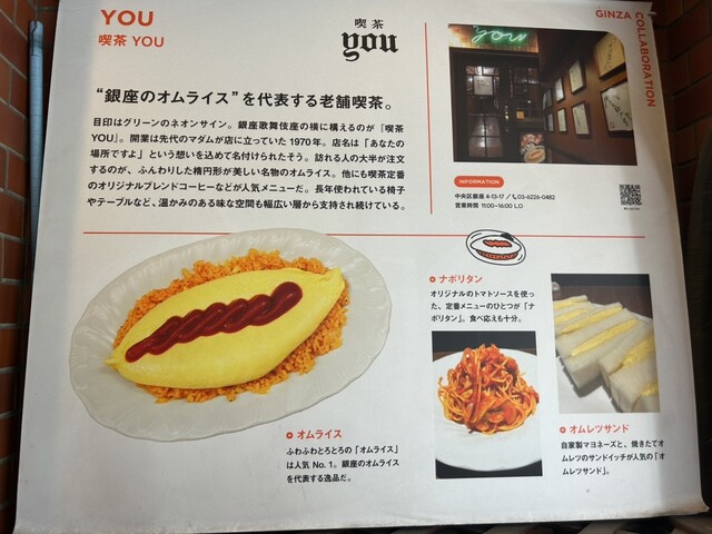 銀座四丁目からほど近く、歌舞伎座の裏手に佇む老舗喫茶「喫茶YOU」。