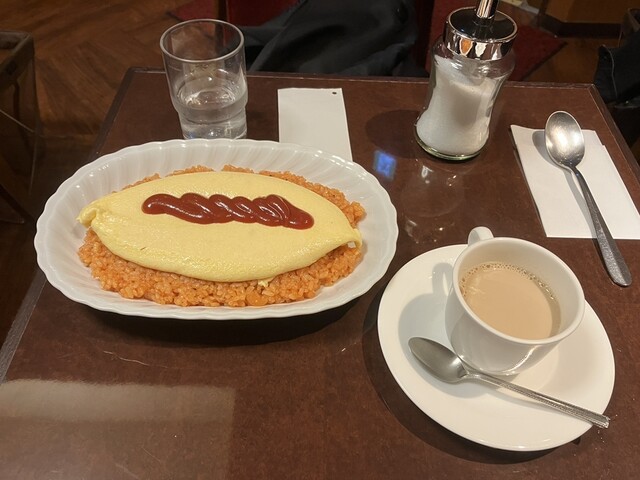 オムライス ホットカフェオレ