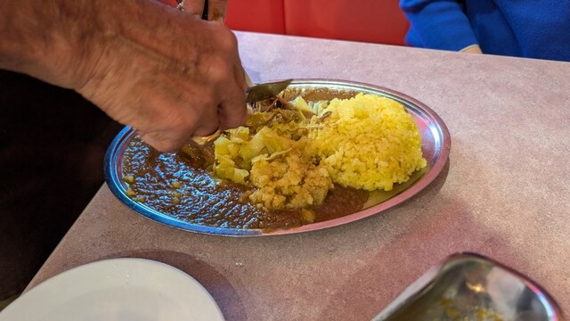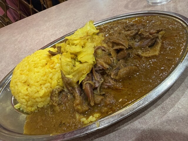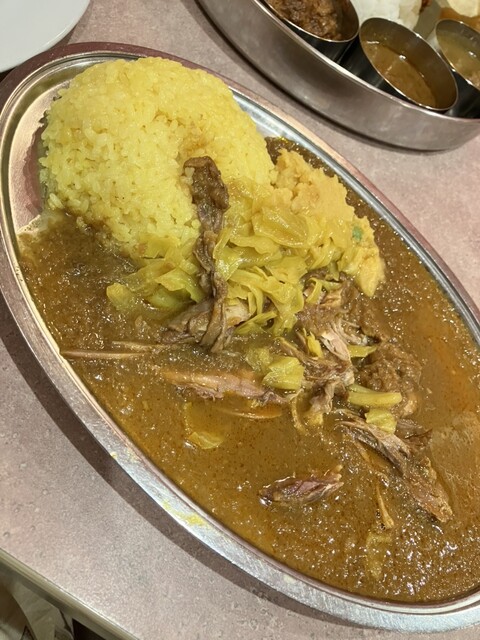 定番のカレーはここでしか食べれない味だと思います。店員さんが卓上でチキンをほぐしてくれ、...