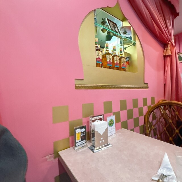 店内はなぜかピンクを基調にした...