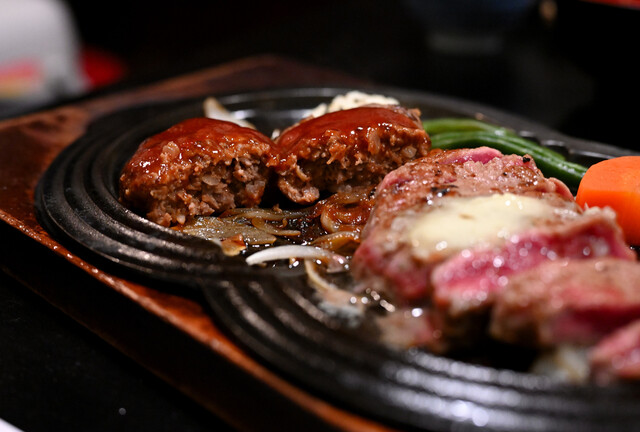 黒毛和牛ハンバーグ(100g)&サービスステーキ(75g)サラダ付き